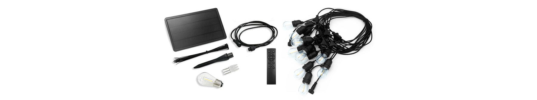 IP65 Waterproof - solar panel, cables and light sockets all weatherproof.