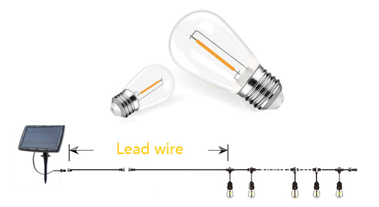 17.8m length includes 4.3m lead wire from solar panel to first bulb. 15 bulb sockets 90cm apart.
