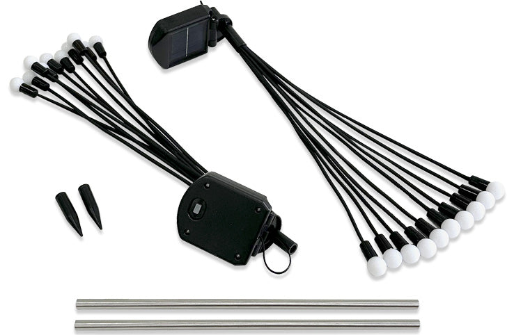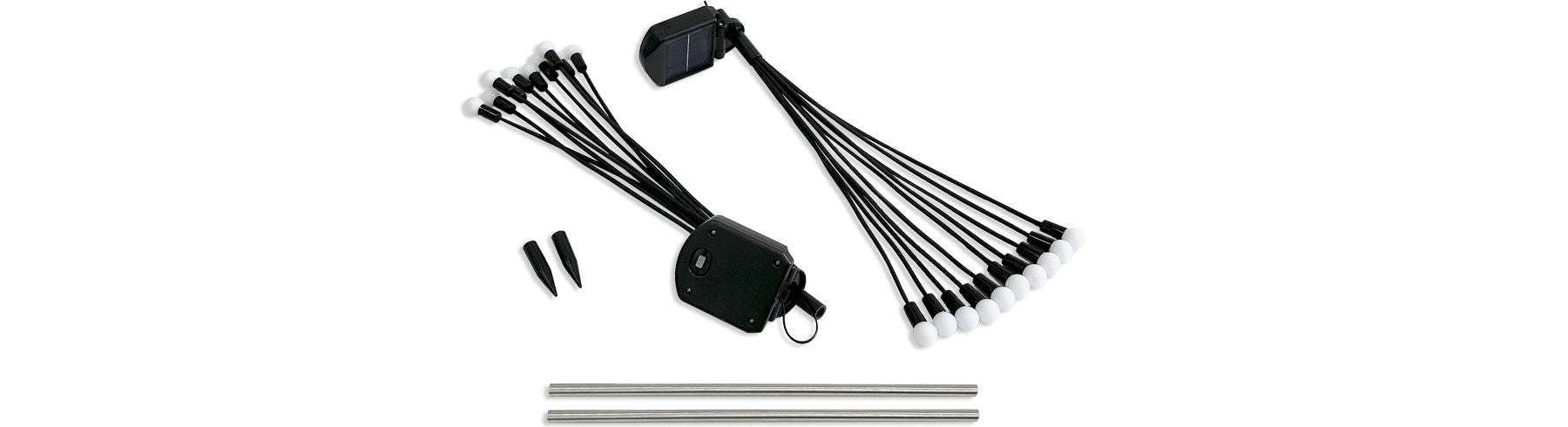 Featuring 6, 8 or 10 stems topped with LEDs, you can shape and mold these lights to suit. Box includes 2 solar lights.