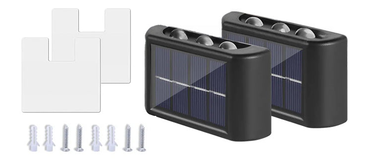 Upgrade your outdoor space with our LED Solar Wall Lights – DIY, wire-free, and eco-friendly. Box includes 2 wall lights.